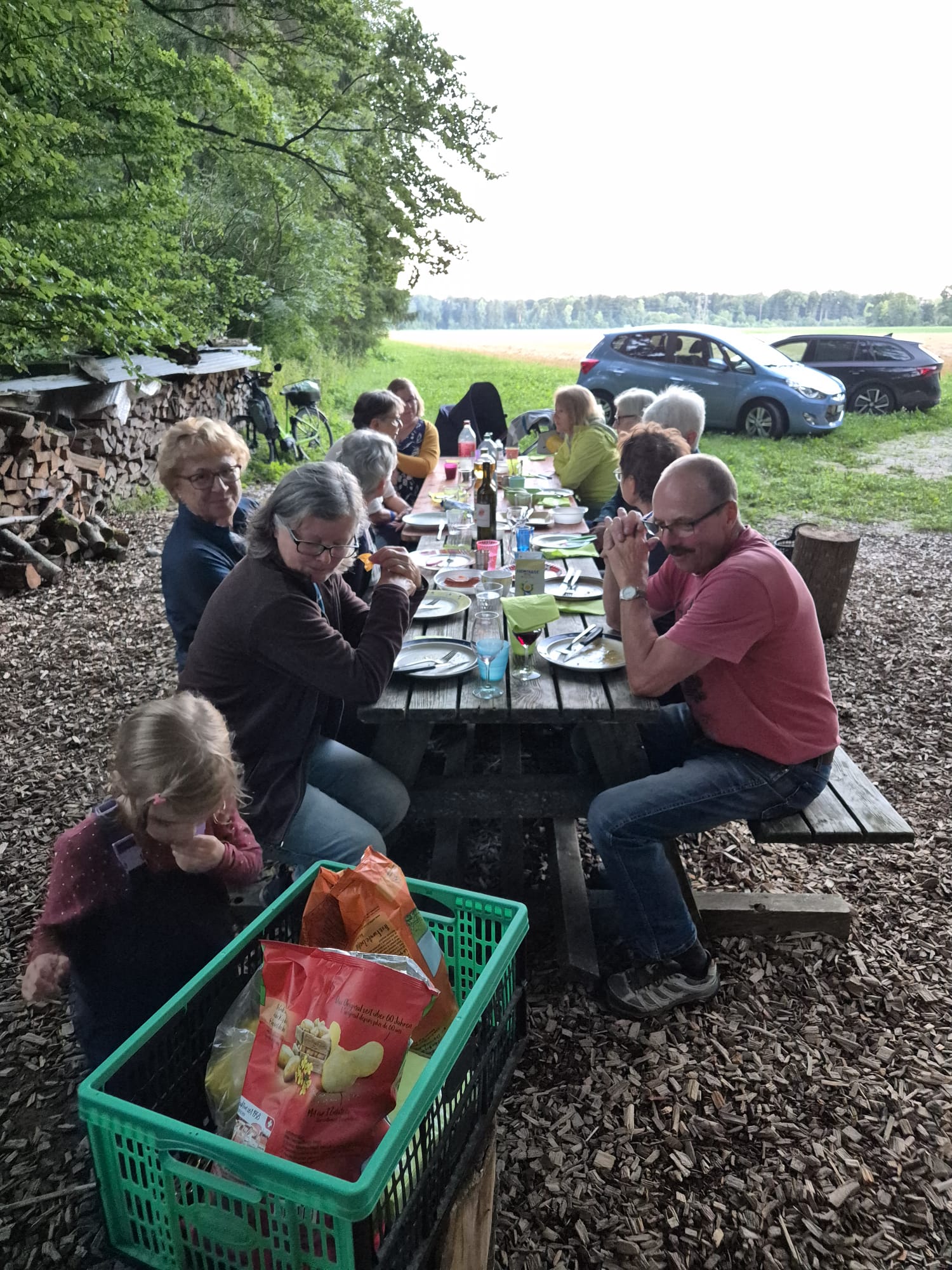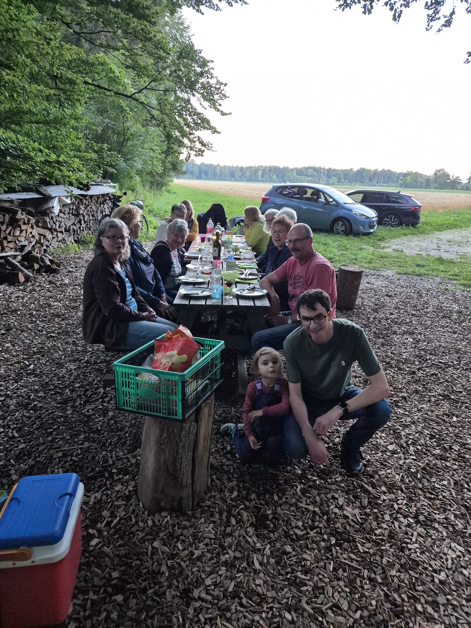Wir erlebten wiederum einen wunderschönen Abend, dieses Jahr mit ganz ruhigem Wetter. Wir machten einen spannenden Spaziergang zum Limpachspitz über den Altisberg zurück zum Grillplatz. Marla gab dem Ganzen einen lebendigen Anstrich mit Springen und Getragen werden. Kurt und Lilo haben für uns den Grillplatz vorbereitet, Kurt hatte wiederum das Feuer im Griff und wir konnten wohl zum letzten Mal die köstlichen Grillbratwürste der Metzgerei Pulver geniessen. Alle halfen mit, so dass wir ein feines Z'nacht geniessen durften. Mit Fast-Vollmond und fliegenden Fledermäusen!